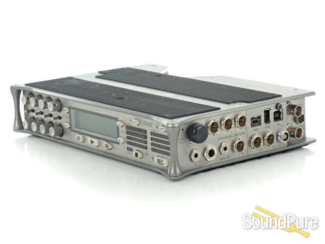 The Sound Devices 788T-SSD Portable Digital Recorder builds on the success of the Sound Devices 7-series digital recorders. The 788T-SSD is a lightweight and compact professional recorder that features 8 digital recording tracks. An internal 256GB SSD, CompactFlash media with UDMA support, external FireWire hard drive or DVD-RAM (with bus powering) all serve as compatible recordable media. Any or all of these options may be used to record audio simultaneously and the 788T-SSD serves as a mass storage device when connected to high-speed USB or FireWire ports on Windows and Mac OS X computers.