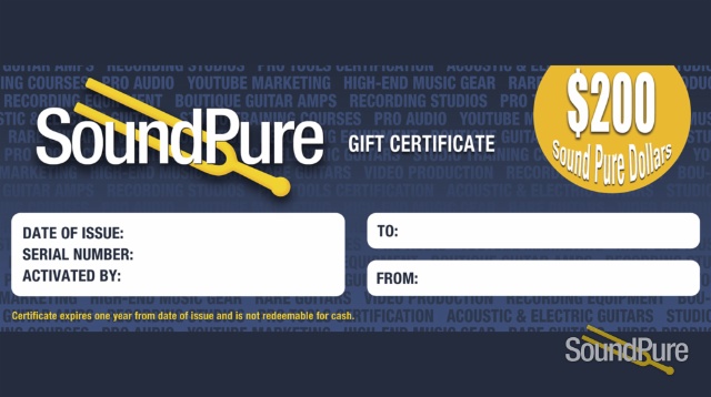 Know a musician or recording engineer with exacting tastes who you'd like to give a gift to, but want to make sure they are 100% satisfied with your choice? You can't go wrong with a Sound Pure gift certificate! Perfect gift for the holiday or any special occasion. Makes a great gift for colleagues as well.