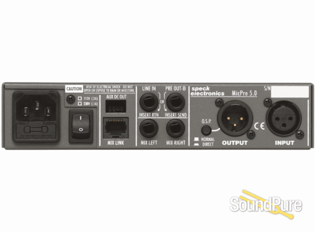 The compact 1/2 rack format of the MP5.0 can easily be rack mounted and combined with the Speck Model ASC equalizer to create a highly functional outboard channel strip.