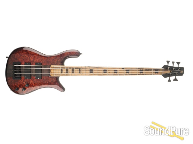 An Extended Range Showstopper Featuring Maple Burl Top, Reclaimed Redwood Body, and a Pale Moon Ebony Fretboard!