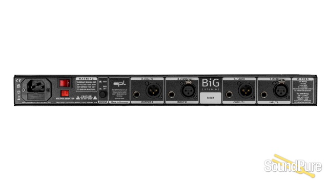 BiG [Studio] spectacularly enlarges the stereo image and opens up new creative ways of sound shaping. BiG [Studio] expands the possibilities of sound shaping with a new tube circuit. The Tube Harmonics control refi nes the harmonic spectrum of every signal, making it more vivid, detailed and increased in size – bigger than life! Visually, BiG [Studio] sports the black design of the SPL Studio series. The internal audio voltage of +/-18V ensures great sound!