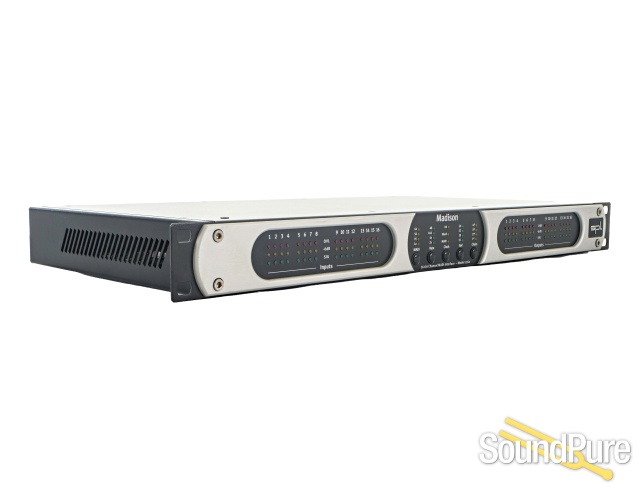 With 16 input and 16 output channels in a single rack space, the Madison combines state of the art signal conversion with highly reliable clock and MADI processing. And as a true SPL unit it is simple to operate, easy to expand and, of course, an awesome sounding conversion system.