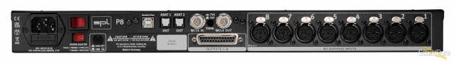 P8 can also be confgured with an optional eight-channel AD converter with ADAT outputs. The digital outputs replace the second analog eight-channel DB25 output of the P8. This allows P8 to be connected directly to the digital ADAT inputs of an audio interface.