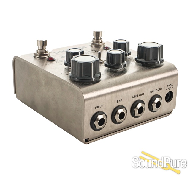 Expression pedal input allows the connection of either an expression pedal (for selectable control over any knob parameter),external tap pedal (for remote time control of Doubletracker), or Favorite switch (to save a Favorite preset)