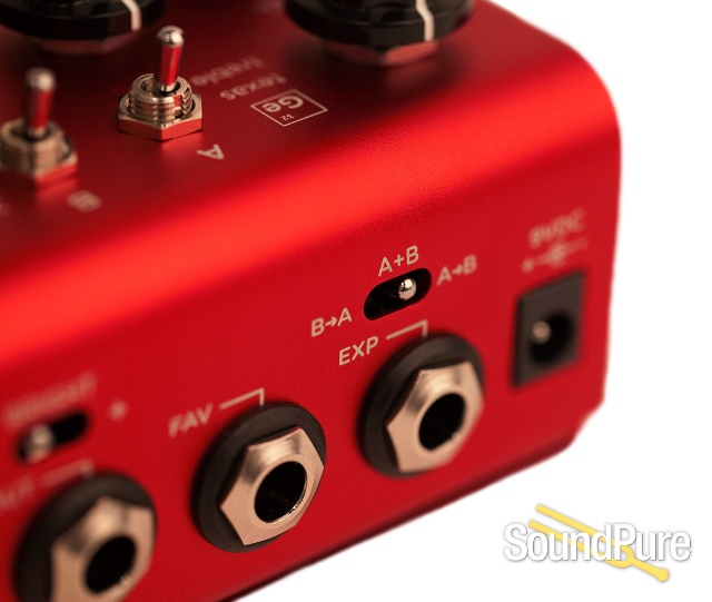 Expression pedal input allows the connection an expression pedal for simultaneous morphing control over multiple parameters (Expression mode), or logarithmic taper for smooth volume control (Volume mode)