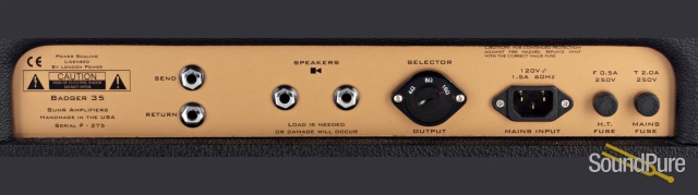 Badger 35 is an innovative mid-wattage amp designed to deliver classic tones at any volume. With it's quad el-84 power section the badger 35 summons a wide range of british tones ranging from west london to dartford. From warm complex cleans, to classic British high gain, and everything in between - Badger 35 delivers. Need that same high gain tone at lower volumes? No problem, Badger 35 offers power scaling to easily dial in real power tube crunch all the way down to 1 watt.