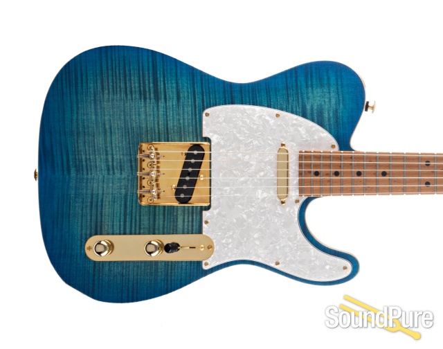 A stunning Classic T in Aqua Blue Burst with Gold hardware.
