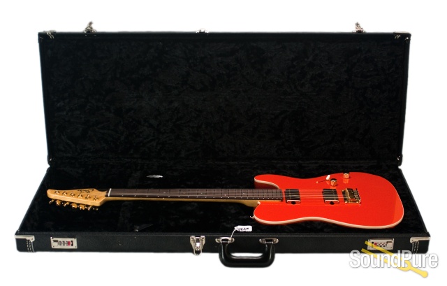Nothing bigger sounding than a two humbucking Suhr Classic T !!! The Fiesta Orange Classic T is a perfect example of this mindset. With Two Doug Aldrich Pickups (neck and bridge) and a 5-way, there's not much we can't coax out of this one. Sparkling clean single coil tones and blistering double coil sounds in one great looking package !!!