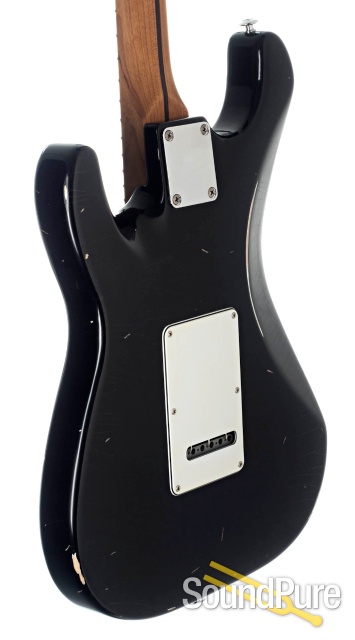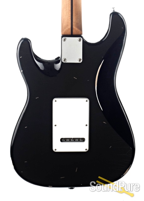 A medium aged Suhr Custom Classic S Antique in Black equipped with ML pickups.