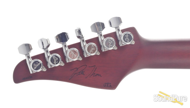 Every Pete Thorn model has his signature laser engraved on the back of the headstock.