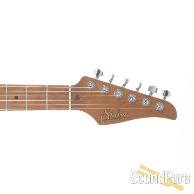 The Suhr Standard is a sleek take on the Classic design. The body is slightly downsized and has a sharper radius on the edges with slightly longer horns to give it a modern, yet classy look. The Standard is equipped with some of our most popular features including an even C slim neck profile, stainless steel frets, and our proprietary SSCII hum cancelling system. The Standard Plus is designed to inspire. From the moment you pick it up, the Standard Plus comes alive in your hands. The scraped binding, white pearl pickguard, crisp body contours and side input jack take this popular body shape to new levels of refinement and versatility.