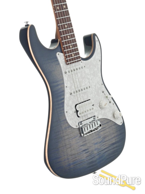 This is an extremely comfortable guitar! From the immaculate feel of the roasted maple neck to the pristine fretwork we've come to expect from the team at Suhr, everything comes together to make a guitar that just "feels right". Fat, percussive tones and super fast runs are on your horizon along with one of the most eye-catching tops around.