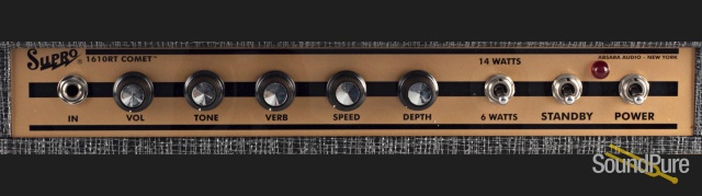The Supro 1610 Comet is a high-gain, low-wattage 1 x 10 combo with reverb, tremolo and switchable power. Designed to act as a go-anywhere companion to your favorite guitars, this lightweight tube amp cranks out 6-Watts or 14-Watts of screaming hot vintage tone with an on-board option to drench your sound in tube-driven reverb and tremolo. The Comet is your desert island tube amplifier.