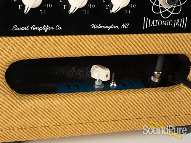 I was well-aware of Swart's sterling reputation before I sat down to play this amp and it still managed to exceed my expectations! You may think that something this size wouldn't be capable of dishing out big, bold tones, but I'm here to tell you that you'd be wrong. With just Volume, Tone and Space (reverb) knobs, it's simple to operate, yet offers a wide range of versatility through such a stripped-down control scheme. Add in a "Hot and Clean" switchable gain option and Swart's built-in Night Light Jr. attenuator and you've got tonal options galore! Now let's get back to that Space knob. The reverb on this amp is simply massive and infinitely musical. I had a blast dialing in all of the possibilities from subtle to spatial (I guess it's called the "Space" knob for a reason.) This Atomic Jr. will make you feel like a tone giant!