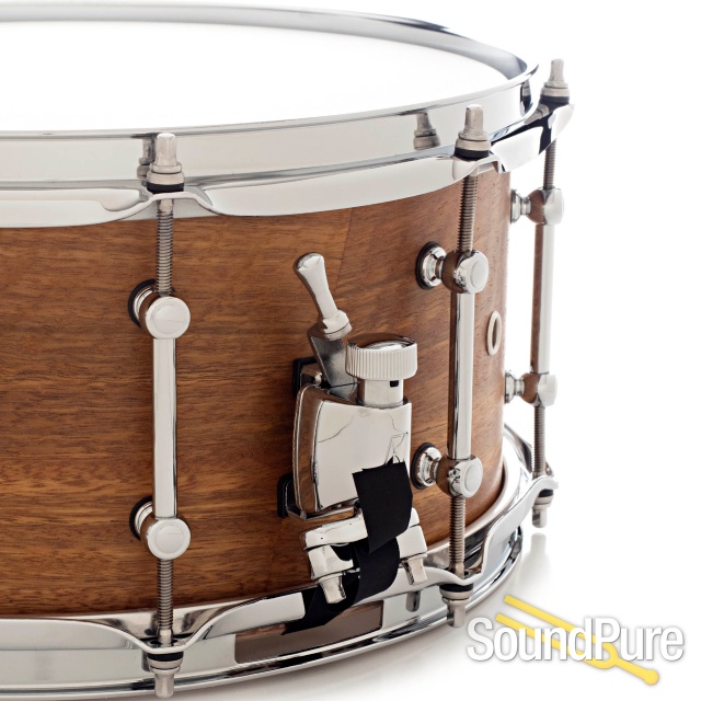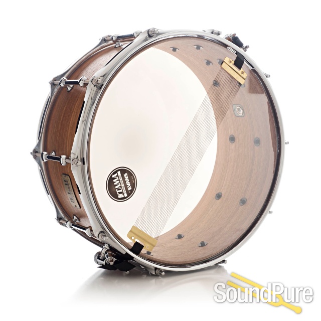 The Spotted Gum is destined to be a quick favorite for players that love new sounds. The spotted gum is indigenous to Australia and has a softer frequency response on the high side that will sit well in many playing applications. The new Mighty hoops provide a nice focus that we loved and the ten tube lug configuration delivers a full-bodied note. Rimshots are solid and backbeats are a thing of beauty with this drum. Another feature that we loved is the Linear Piston Strainer which is typically used on the Starclassic Bubinga snare drums. It's super smooth action coupled with the removable butt snare allows for changing heads without adjusting your snare wire settings.