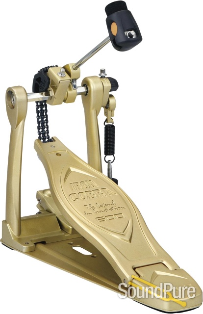 The newest addition to the Iron Cobra series, the Iron Cobra 600's most unique feature is a reversible cam called the "Duo Glide Cam." A simple adjustment allows fast changes between a true round "Rolling Glide" sprocket and an offset "Power Glide" sprocket. Drummers can choose the appropriate cam based on playing style, musical environment, and personal preference. In addition, the Iron Cobra 600 features a newly designed hinge for precise footboard action, and ball bearing equipped "Speedo-Ring" rocker cam.