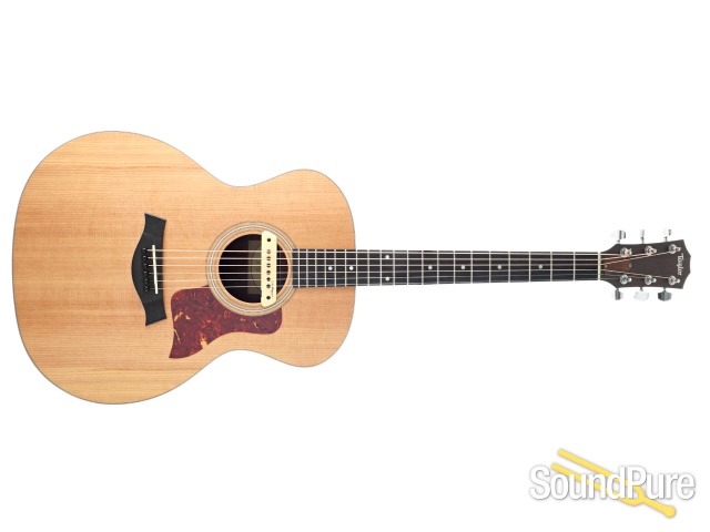 Who says a laminate guitar can't have character? This model from Taylor Guitars has a great sound and sleek look. Classic Taylor sparkle and shine, great for the studio.