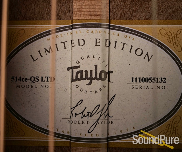 Discover the Taylor 514ce QS LTD, a Grand Auditorium acoustic-electric guitar that offers a truly captivating experience. Its voice is shaped by a Sitka Spruce top paired with beautifully figured Quilted Sapele back and sides, delivering a rich, clear tone. The Venetian cutaway and a satin-finished Tropical Mahogany neck provide a comfortable feel, making it easy to navigate the Ebony fingerboard with its distinctive Rosewood Capstone inlays. This instrument has also received meticulous luthier attention, with its frets expertly polished, recrowned, and leveled. This work ensures a supremely playable and stable guitar that feels great in your hands and sounds remarkable. It's a testament to fine craftsmanship and a wonderful addition to any musician's collection.