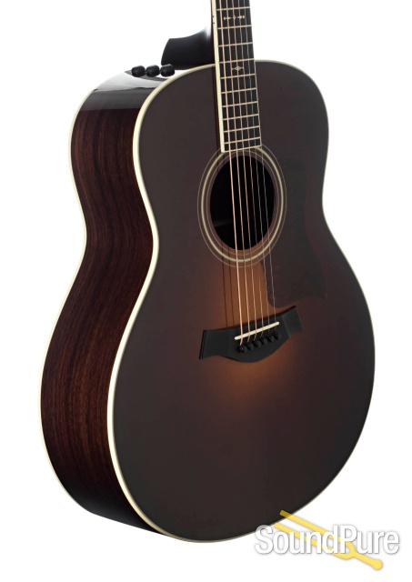 Here's a Taylor that is yearning for someone to come along and do some serious fingerpicking on it. Thump a bassline with your thumb and you might get a little scared with the bass this baby gives out, it has absolutely stunning clarity in that department. Overall, this Taylor has unsually focused midrange and comfortable highs, deviating pleasantly from the typical Taylor tonal palette. Lead lines on this guitar are also very clear and articulated, making it an excellent choice for a player who is used to the electric. Also, this guitar has an awesome cowboy/southwestern vibe, featuring an understated sunset burst and far-out fretboard inlay!