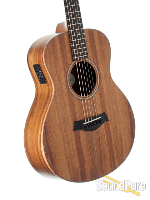 The GS Mini-e Koa brings the vibrant sound and organic beauty of Hawaiian koa to Taylor's ultra-popular reduced-scale acoustic guitar. The GS Mini's compact proportions make it a great choice for players who take their music on the road, and with a solid koa top, this model serves up a rich, bold sound that punches well above its weight for a smaller guitar. The built-in ES-B pickup offers clear, natural amplified tone and includes a digital tuner with an easy-to-read LED display. The GS Mini-e Koa ships with a structured gig bag.