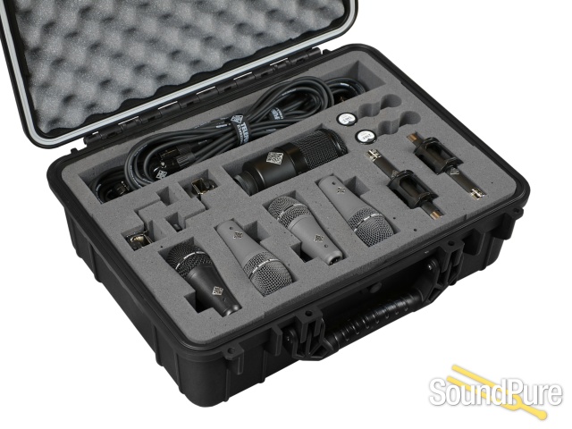 TELEFUNKEN Elektroakustik has assembled the three unique voices of its TEC Award winning Dynamic Series microphone line, in combination with two matched small diaphragm FET condensers, and packaged them as the 7-microphone DC7 Drum Pack for drum recording and live performance applications. Each microphone set consists of the M82 handling kick drum duties, the M80-SH on snare, the M81-SH for toms, and the M60 FET Cardioid for cymbals or overheads. The DC7 ships in the heavy-duty hard shell HC87 flight case and include multiple drum mounts (M782, M784 and M785) and an SGMC-5R five-meter XLR cable with a right angle female connector for each microphone in the set.