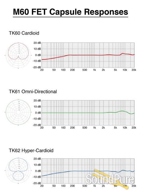 The M60 FET MASTER SET features one M60 amplifier paired with three interchangeable capsules including the TK60 cardioid, TK61 omni-directional and TK62 hyper-cardioid.