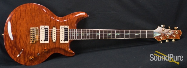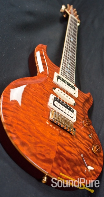 This Glory Custom is mind-blowing, an absolute stunner. The depth in the finish is out of this world, I feel like I could reach into the top and pull something out. The attention to detail does not go unnoted, as every little contour and divet on this body was beautifully executed. The guitar has an articulate clairty that's full and rounded - every part of every note rings through mighty and proud. The guitar is exceptional - locally made, beautifully crafted and sounds just as nice as any other compliment we've thrown it's way. This guitar is a winner in all aspects and do not expect it to last here very long.
