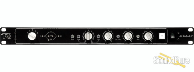 The S-Blender is a mini mastering console with two stereo inserts for parallel / serial processing and a perfect tool for mixing and mastering. This model features aluminum knobs.