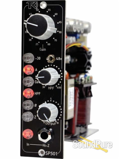 SP501 is a single slot 500-series class-A unit with a unique hybrid design including both vintage and modern circuits derived from TK’s flagship DP1 stereo preamp. The midrange crunch of the germanium sound of the mid 60’s, the low mid punch and thick sound associated with British Class A from the early 70’s as well as the more modern tone from the 80’s and 90’s are finally all available in a single unit.