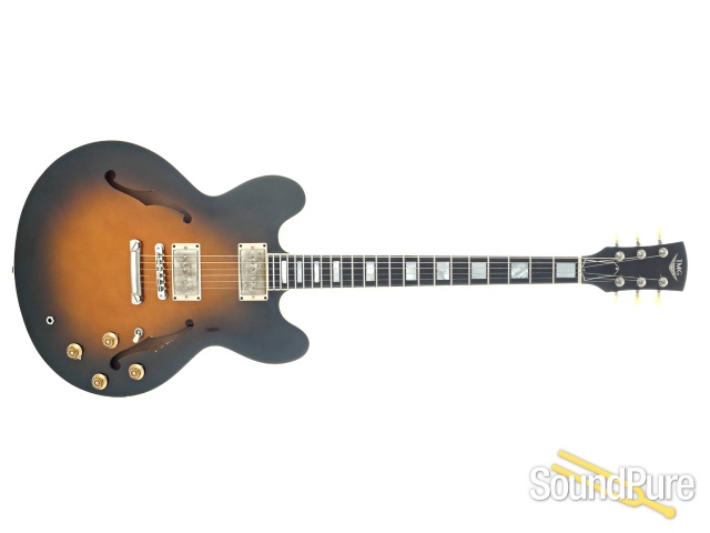 Immediately this became a shop favorite semi-hollow. The mix of classic and modern elements create an unparalleled playing experience that leaves you feeling warm inside. From the realistic aging to the incredibly comfortable neck, you can't help but crack a smile when you pick the Theo up. Plug it in and you'll be grinning from ear to ear!