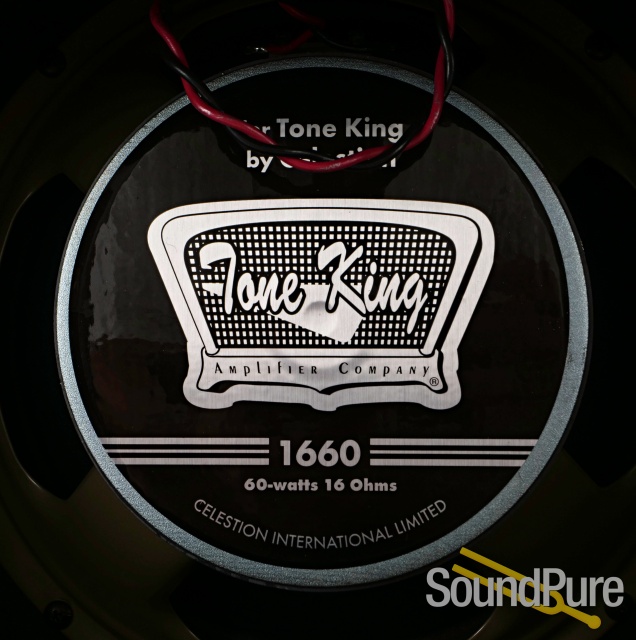The Royalist 212 is a rear-ported 2x12”, closed-back extension cabinet designed to perfectly match the Tone King Royalist MKIII. At the heart of the cab are two custom Celestion "1660" 12” speakers with detailed and complex overtones, a warm low-end, rich vocal mid-range and detailed top-end. This Royalist cab reveals every nuance of the wide tonal complexities found in the Royalist MKIII amp. The power and thump of the "1660" speaker makes the Royalist cab ideal under ANY amp head. The closed back design delivers a focused sound that is simply massive. As with all Tone King speaker cabinets, the Royalist 212 is built in the USA and uses a sturdy tongue and groove Baltic Birch construction with oversized 12-gauge speaker wire soldered between the speaker and terminal, assuring you capture every ounce of valuable tone.