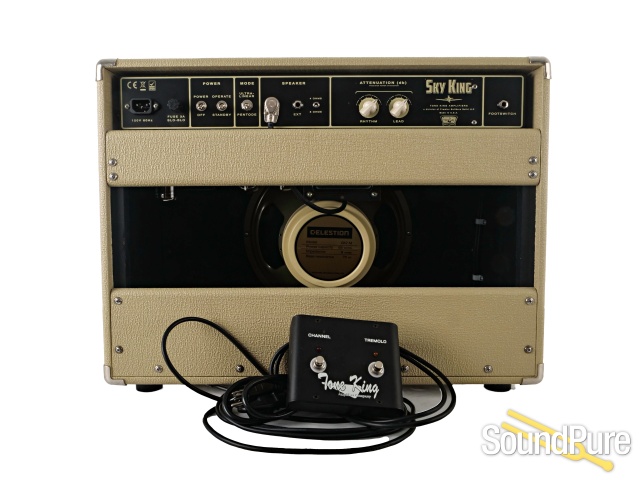 The Tone King Sky King is a beautifully engineered, vintage-voiced powerhouse that delivers classic American tube tone with modern flexibility and control. Its 35-watt, two-channel design offers shimmering cleans and rich, harmonically complex drive, enhanced by lush tube-driven reverb and expressive bias-modulated tremolo. The built-in Iron Man attenuator lets you dial in inspiring tones at any volume without sacrificing feel. Powered by 6L6 tubes and voiced through a Tone King–branded Celestion speaker, the Sky King feels alive, responsive, and authoritative. Thoughtfully built and endlessly musical, it’s a serious long-term investment for players who value tone, touch, and versatility.