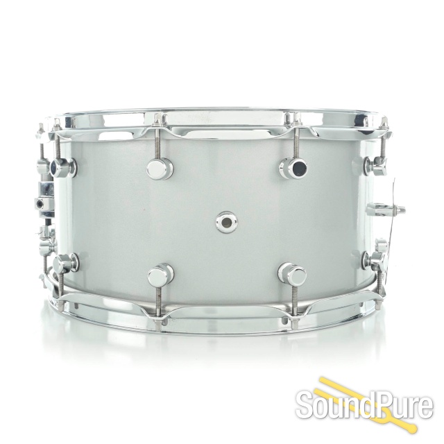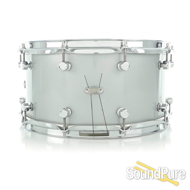 This Trick Drums aluminum snare drum measures 14" x 6-1/2" and features lathe cut bearing edges, solid machined aluminum tuning lugs, and precision snare beds.