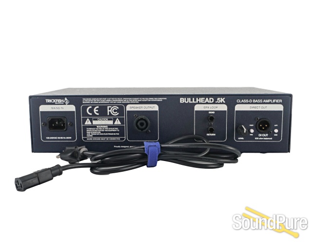 The Bullhead .5K bass amplifier sets a new performance standard in affordable bass amplification. Featuring the acclaimed Mike Pope designed low noise pre-amp integrated with a tour proven, 700W Class D power amplifier, the BH.5K offers all of the professional features and performance expected of a Trickfish product. Housed in a robust aluminum chassis, the powerful head offers a wide variety of tone-shaping capabilities via a 4-band EQ and 8 frequency select options. Other features include selectable input sensitivity, aux input, Pre/Post Balanced DI Output, EFX: Parallel loop, amp mute and a Neutrik Speakon combi-connector. Weighing in at a paltry 5lbs the BH.5K also sports classic “chicken head knobs” for easy, fast adjustments and the rack-mountable chassis is powder coated in a durable, Deep Sea Blue matte finish.