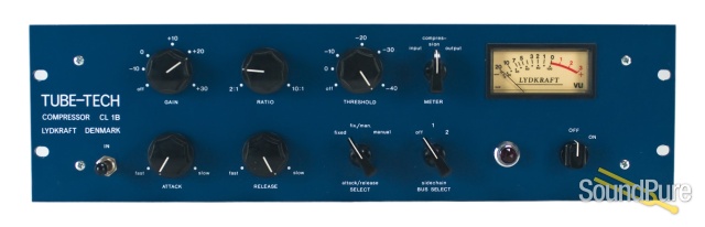 The TUBE-TECH CL 1B Compressor features a gain-reduction element, positioned immediately after the input transformer. It is controlled by the sidechain amplifier, which also contain the two time control circuits - one for fixed and one for variable Attack/Release. The two time-controllers can either be used separately or combined. This circuit contains semiconductor OP-amps for the entire control.