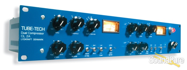 The TUBE-TECH CL2A Dual Compressor features two independent optical compressors. The optical gain reduction element is placed after the input transformer and then followed by an all tube-based output amplifier with a +10 dB gain. A switch with three positions (Link 1, Off, Link 2) is used whenever you want to use the two separate compressors in stereo mode or link several compressors together. The two link busses are identical.