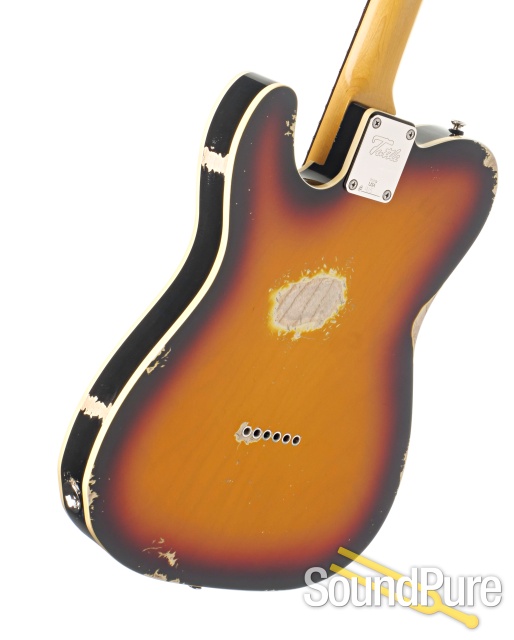 The Tuttle Vintage Classic T is a stunning blend of classic design and soulful character, built to feel like a well-loved original from the first note. Its lightweight ash body delivers lively resonance and snap, while the “PD” T pickups provide clear, articulate twang with warmth and depth across every position. The maple neck with a comfortable C profile and 7.25" radius offers a smooth, familiar playing experience that feels effortless in hand. Finished in a beautifully aged 3-tone burst nitro with double binding, it carries a rich vintage presence. Full of personality and feel, this Tuttle brings a timeless voice that’s ready for any musical moment!