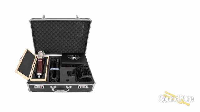 The black aluminum locking carrying case with the V13 keeps your microphone, cables, and power supply in one place, and includes a slot for a spare vacuum tube. 12AX7, 12AT7, and 12AY7 tube types will work with the V13 microphone. Folks who experiment sonically with NOS tubes can feel safe using these tube types.