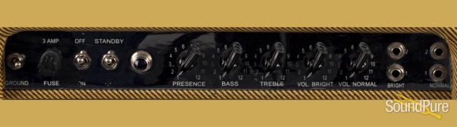 A big favorite with our gigging customers, the Victoria 35310 shares the same tone control design of our other 28W amps, which adds a certain amount of perceived gain beyond the 1 o'clock position, almost like an overdrive pedal. Working with these controls enables you to raise and lower the threshold for clean tones in different sized rooms with precision.