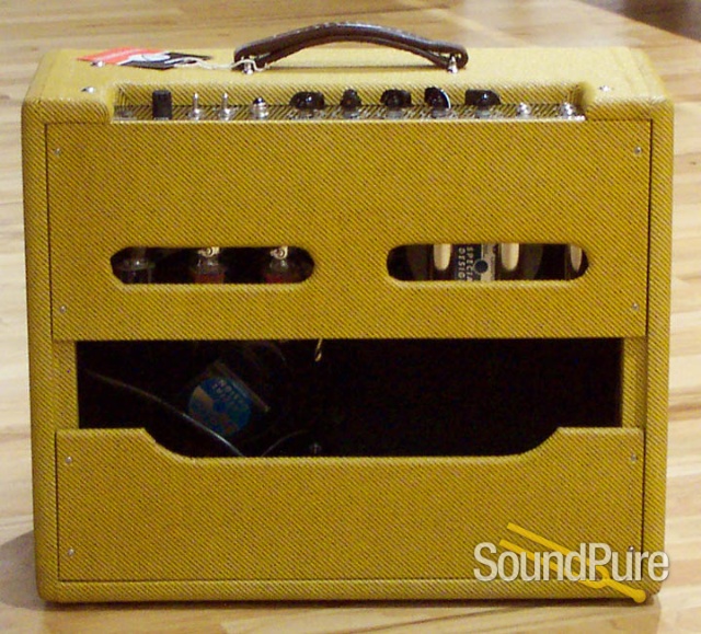 Here's our reverent take on the rare narrow panel Super. Only a bias trim pot and test points have been added to the Super design. Over the years, the original model often went unnoticed by many tweed freaks, but that won't be the case when you plug into a Victoria 35210. This amp does "clean" exceptionally well, with a smooth and aggressive overdriven tone that seems to work perfectly with just about any guitar ever made.