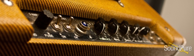 The 35310 is a very versatile amp that delivers more pure tube distortion rather than speaker breakup, yet it also produces plenty of lush, clean headroom. A big favorite with our gigging customers, the Victoria 35310 shares the same tone control design of our other 28W amps, which adds a certain amount of perceived gain beyond the 1 o'clock position, almost like an overdrive pedal. Working with these controls enables you to raise and lower the threshold for clean tones in different sized rooms with precision.