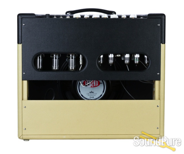 The dual 6V6 powered Silver Sonic features the classic 5F6-A architecture combined with 100% tube reverb and harmonic filter vibrato all in a 1X12 combo cabinet. At 20W, it delivers rich dimensional performance for intimate gig or studio use. The Silver Sonic’s tweed heritage is evident with every note, administering a luxurious pallet of tones, from sweet cleans to aggressive overdriven flavors. Harmonic filter vibrato adds 3D sonic imagining unlike any other amp (except the Victoria Golden Melody!. Full size Accutronic tank is standard in the all tube reverb circuit. The Silver Sonic brings the huge spatial performance of the Golden Melody in a lower wattage, studio-friendly package. One strum and you’ll be a believer. Two tone cabinetry available in black and cream.