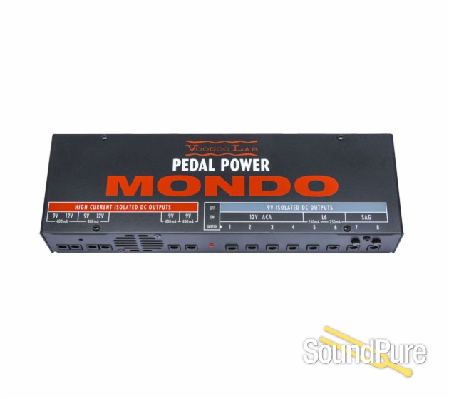 Pedal Power® MONDO is a high-current capable power supply that can power the largest and most diverse pedalboards. From digital power-hungry effects like those from Strymon, Eventide, Line 6, TC Electronic and more, plus compatibility with all standard 9-volt battery stompboxes, MONDO is perfect for large to gigantic pedalboards. Features 12 completely isolated, filtered, and regulated output sections that will keep your pedals dead quiet and free from high-frequency noise that occurs with digital "switching" power supplies.