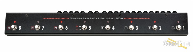 Pedal Switcher PX-8 will simplify and organize your effects pedal life and improve your tone at the same time. But it can do a lot more than that, depending on what your needs are. At its heart, PX-8 is an 8-loop true-bypass audio switcher that gives you convenient, button-tap instant access to your guitar effects pedals. The loops use the finest gold contact relays sealed in nitrogen for absolute transparency and pristine sound quality. If a loop isn't engaged, that pedal, with all its inherent "character" (as in noise), is totally out of your signal path. Multiply that by eight or more stompboxes and the sonic benefits are obvious.