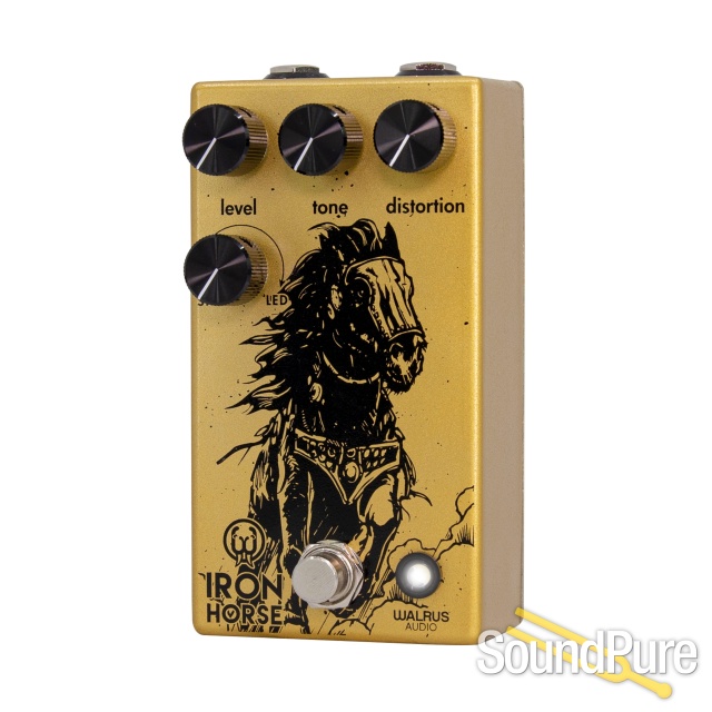 The Iron Horse is our take on a classic distortion circuit that’s thick, punchy, riffy, and rowdy. With the help of the Si/LED knob and wide range of the distortion knob, this true bypass, high-gain behemoth can be finely tuned for clear overdriven sounds or let the reigns loose for a full-on distorted onslaught.