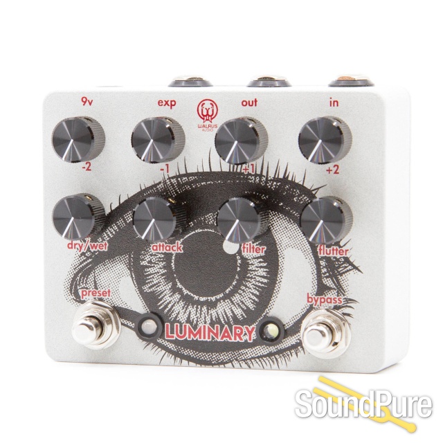 The Luminary is a powerful polyphonic quad octave generator with features for creating inspiring symphonic gusts of sound. Operating on the Analog Devices Sharc platform, the Luminary gives you the ability to dial in any combination of four separate octaves including -2, -1, +1, and +2, the user can craft many different complex sounds and textures with crystal clear and immediate octave tracking. The Luminary has three onboard presets available for saving your go-to sounds, as a well as live mode. This means the user can have up to four custom sounds available at any moment. Get epic steel sounds with the modulation control unengaged. You’ll find more experimental options with the filter control or a tremolo effect with the flutter control. Couple the Luminary with an expression pedal to expand its creativity even more.