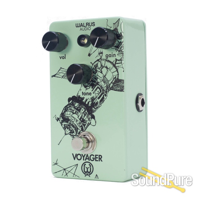 The Voyager is a gain/preamp overdrive that boasts a full spectrum of tone from any setting on its simple set of controls. From its lowest to highest settings, the Voyager provides a uniquely superb amount of clarity to any style of playing. At lower gain settings, it brightens the signal and adds clarity to each note played. With the gain turned up, the Voyager transforms into a thick overdrive, providing depth to chorded playing while retaining the clarity needed to break through on solos. Has True Bypass switching.