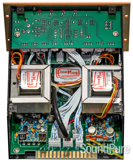 The x731 (Melcor 1731) and x18 (Dean Jensen's 918) Op Amps saturate a bit differently. The 1731 breaks up faster and has more color when pushed. The 918 is fairly linear/clean with a smidge of character and does not break-up/saturate as quickly. The 100% steel output transformer colors the signal more than the 50% nickel transformer when pushed. However, both are designed to impart character. The 50% nickel transformer will impart less character and provide greater high and low frequencies. For an ultra clean, character-lacking tone, try the x18 while bypassing the output transformers completely.
