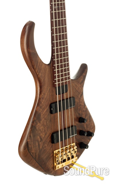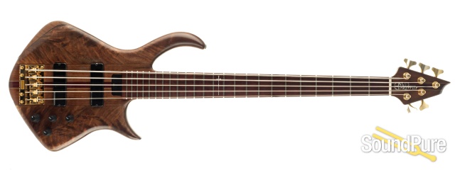 A truly rare instrument from a small boutique builder with appointed with some equally precious woods. I could not believe this instrument was full scale! The fit and finish of the neck makes even the 5-string width extremely comfortable in the hand. This one begs for active, fast playing; bolstered by the clarity and punch of the pickups and pre-amp. We searched and searched and can safely say, this bass is truly unique!