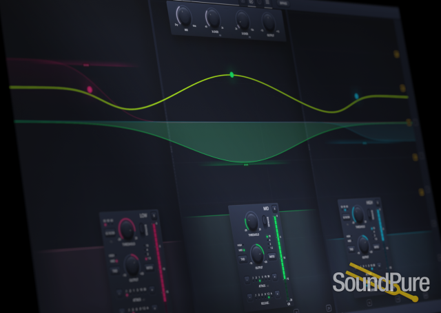 Comprehensive Metering: Gain reduction visible on the front panel and plugin, with input meters for each band in the plugin.